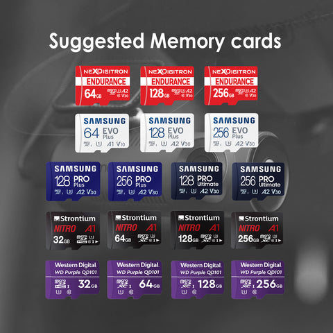 We suggest purchasing recommended Micro SD Cards Only (64 GB, 128 GB or 256 GB)