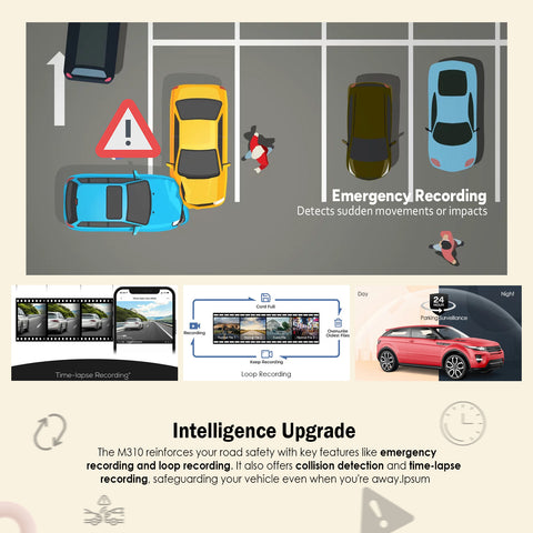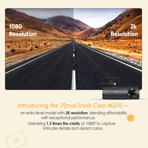 Equipped with a 3MP Image Sensor, the Dash Cam M310 records in 2304*1296P, which is 1.5 times clearer than the standard 1080P, further enhancing the image vividness.