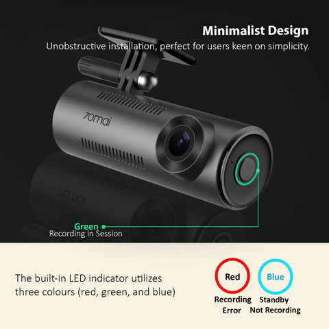 Minimalist design and unobstructive installation, perfect for users keen on simplicity. The built-in LED indicator utilizes three colors (red, green, and blue) to display different recording status, providing simple but clear reminders to keep you informed while driving.