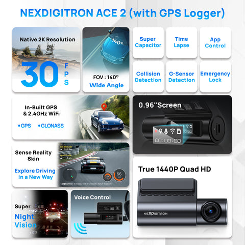 ACE 2 DashCam with 1440P resolution allows for sharper and more detailed video footage. This can be particularly useful when you need to capture clear details such as license plate numbers or facial features.