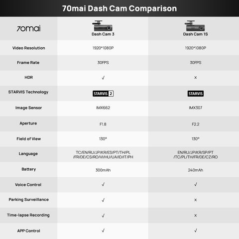 • Refreshed HDR and 70mai's advanced imaging tech focuses power on range of interest (ROI), ensuring balanced exposure, while correcting windshield color and transparency for a vibrant, detailed view of every shade.
