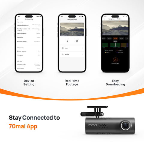 •Easy Downloading - Access the album through the 70mai App and easily download. All emergrncy-related assets are securely stores within the 'Event Folder'.